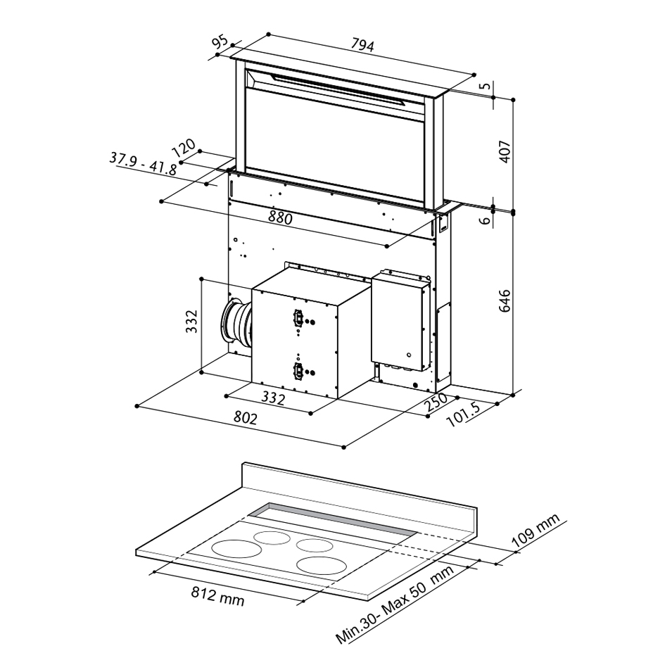 Аспиратори за вграждане в работен плот и долна композиция шкафове