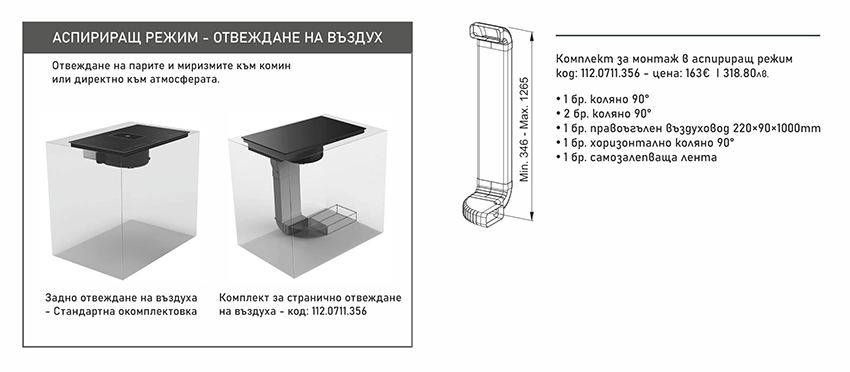 - В цената на аспиратора не е включен комплект за извеждане на въздуха