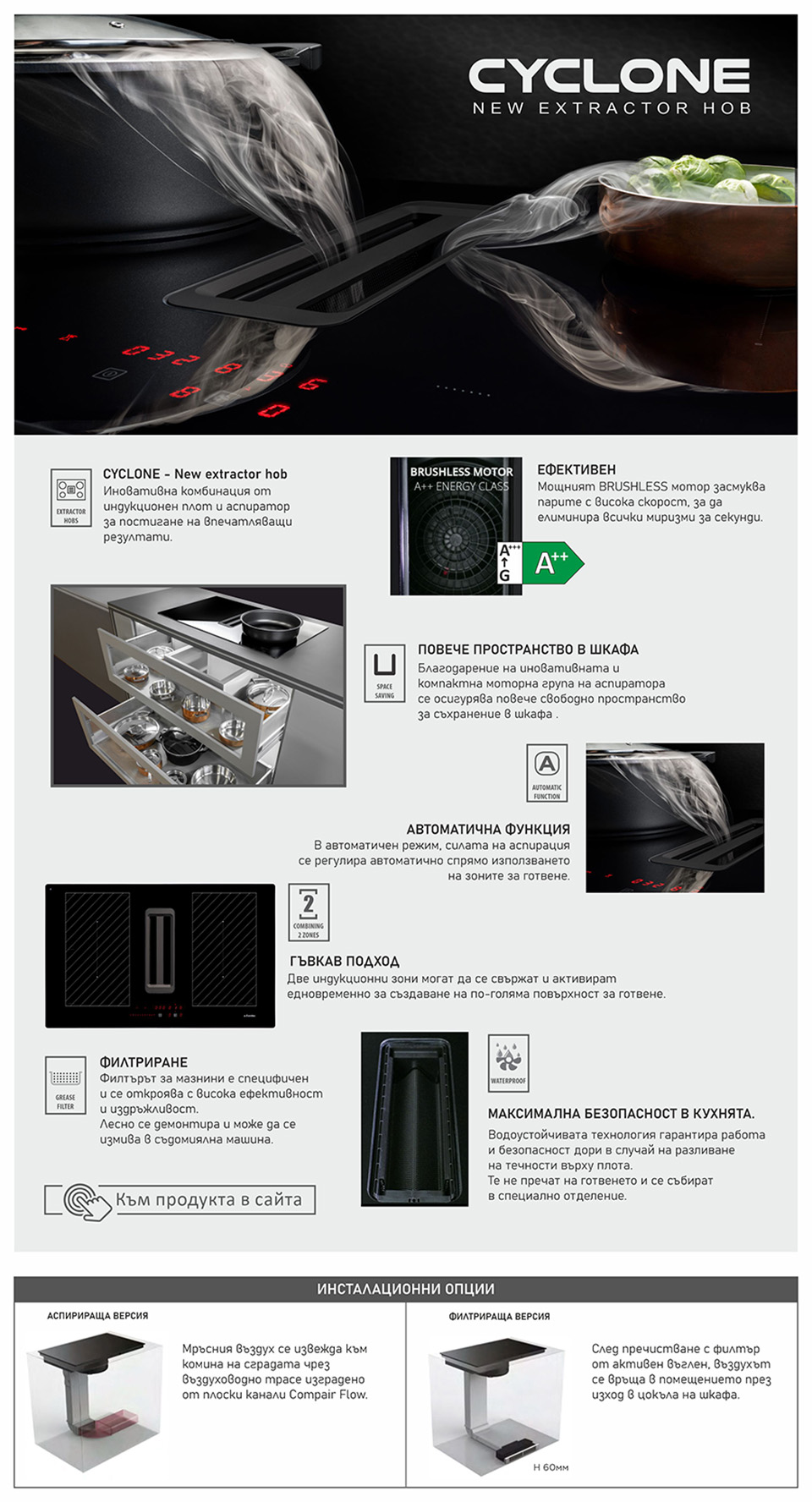 - В цената на аспиратора не е включен комплект за извеждане на въздуха