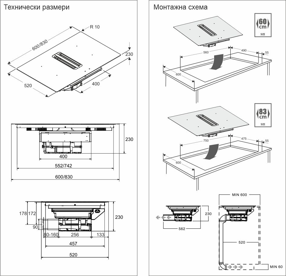 - Размери на продукта (Д х Ш) - 600x520 mm/ 830х520 мм
